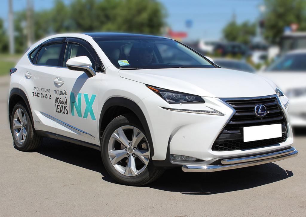 Защита переднего бампера радиусная двойная d-60+43, арт. LNXT_1.1 для автомобиля Lexus NX-200 TURBO 2015--2017г.в. - представляет собой элемент тюнинга и защиты автомобиля и производится специально для данной модели компанией Технотек. Данное изделие изготавливается из высококачественной нержавеющей стали AISI 304 с полировкой, что обеспечивает сохранение отличного внешнего вида в течение длительного времени в наших непростых климатических условиях. Срок поставки составляет 1-5 дней. Установить деталь Защита переднего бампера радиусная двойная d-60+43 для автомобиля Lexus NX-200 TURBO 2015--2017г.в. можно на нашем сервисе, предварительно записавшись по телефону.