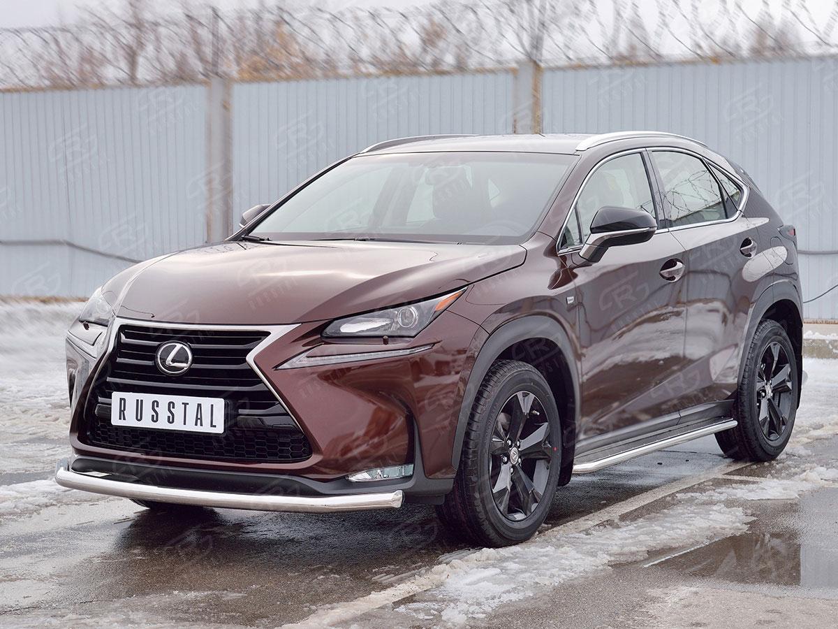 Защита переднего бампера секции Русcталь для Lexus NX 2014 (Лексус NX 2014) кроме F-Sport! LNXZ-002577 изготовлена из высококачественной нержавеющей стали марки AISI 304, труба имеет диаметр 57 мм.