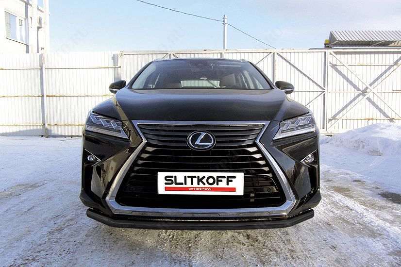 Защита переднего бампера d57 черная Lexus RX-350 (2015-2019) , Slitkoff, арт. LRX15-002B (дополнительное изображение 1)