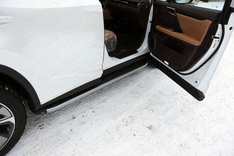 Пороги алюминиевые с пластиковой накладкой (карбон серебро) 1820 мм для автомобиля Lexus RX200t/RX300/RX350/RX450h (AL20) 2015- (кроме F-Sport) TCC Тюнинг арт. LEXRX200t15-10SL