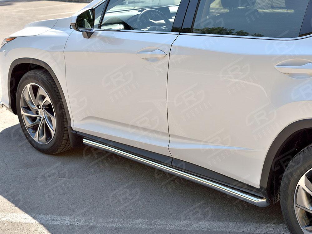 Пороги трубы Русcталь для Lexus RX 200t 2015 (Лексус RX 200t 2015) LRX2T-0023701 изготовлены из высококачественной нержавеющей стали марки AISI 304, труба имеет диаметр 57 мм.