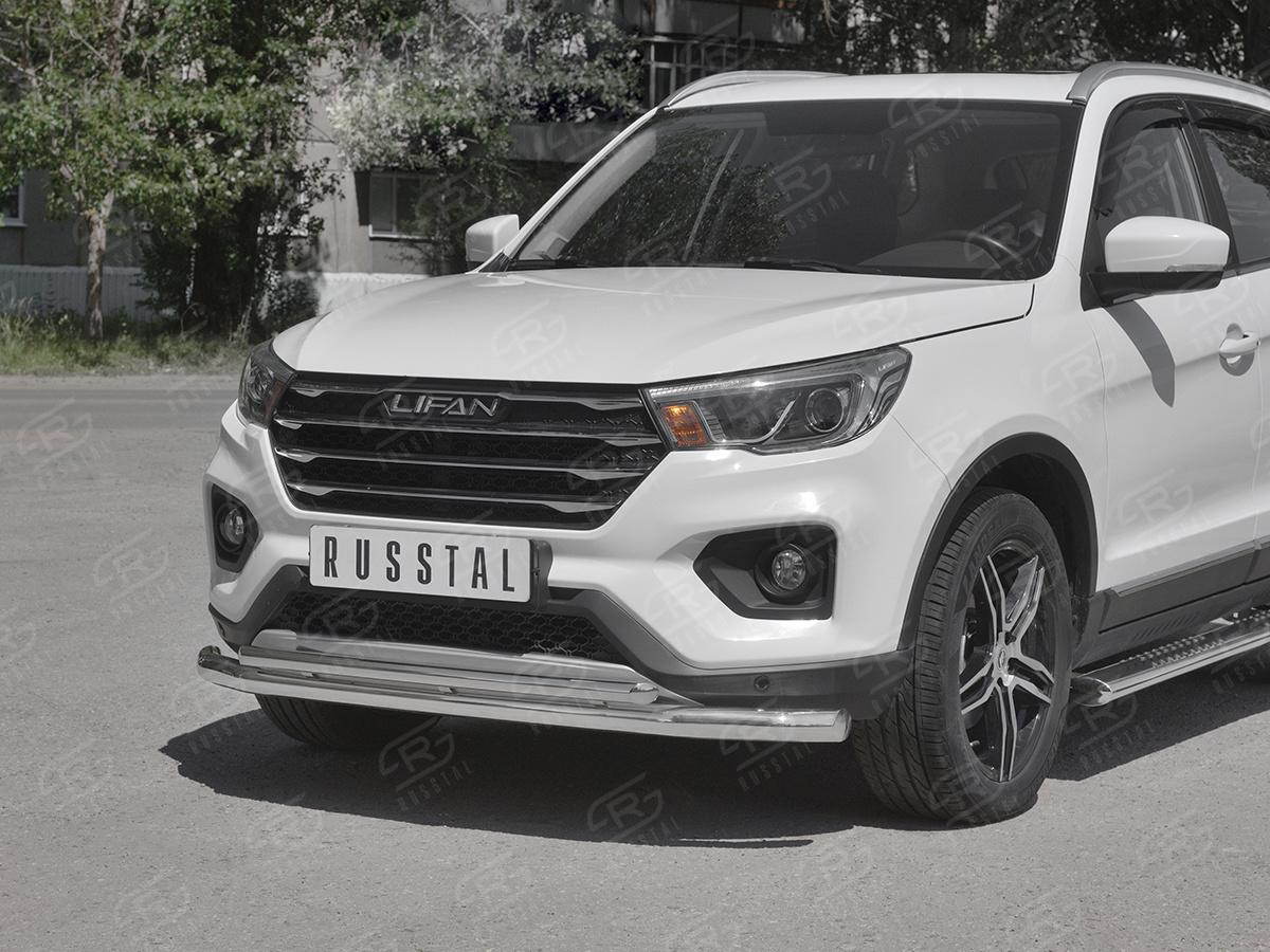 Защита переднего бампера d57 секции-d42 дуга для автомобиля Lifan X70 2018 арт. LF7Z-003283 - представляет собой элемент тюнинга и защиты автомобиля и производится специально для данной модели. Данное изделие изготавливается из нержавеющей стали и полируется вручную, что обеспечивает сохранение отличного внешнего вида в течение длительного времени в наших непростых климатических условиях. Срок поставки составляет 1-5 дней. Установить деталь Защита переднего бампера d57 секции-d42 дуга для автомобиля Lifan X70 2018 арт. LF7Z-003283 можно на нашем сервисе, предварительно записавшись по телефону.