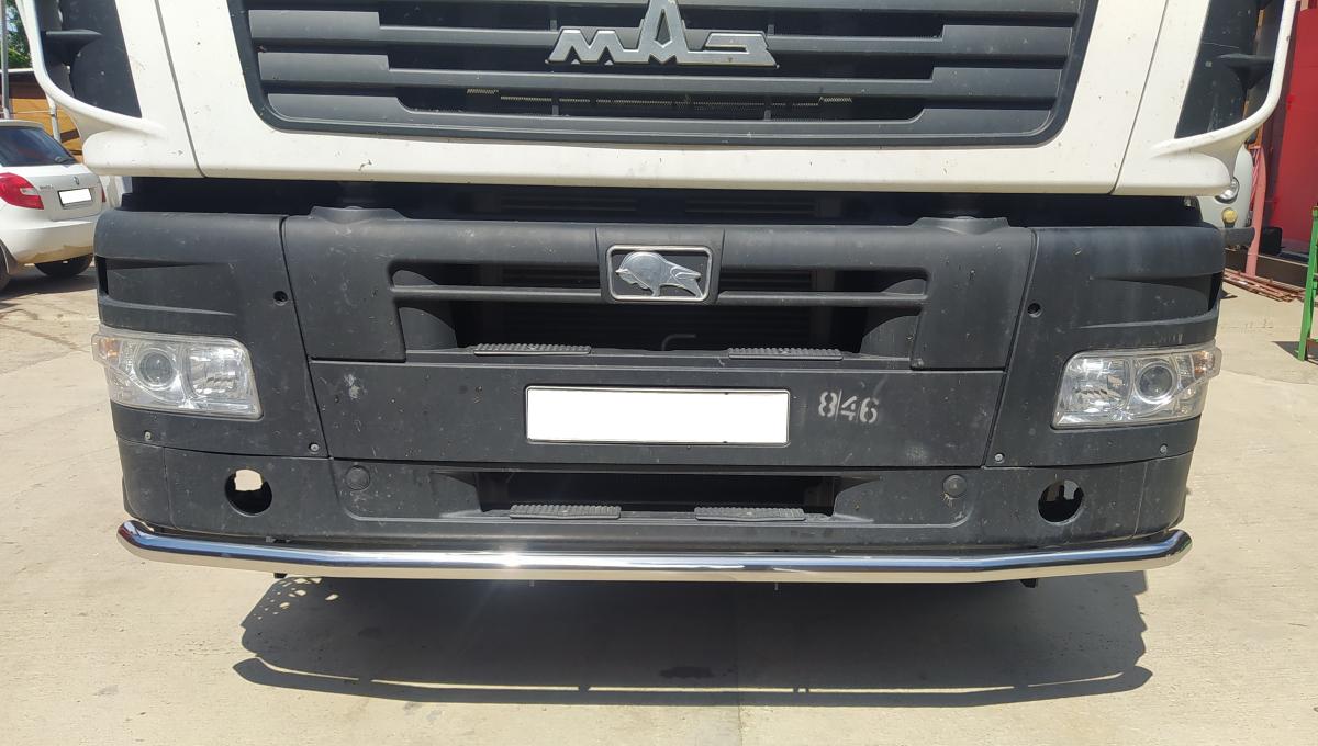 Защита переднего бампера d 60 арт. MAZ.6312.02 для автомобиля Маз МАЗ 6312 - представляет собой элемент тюнинга и защиты автомобиля и производится специально для данной модели. Данное изделие изготавливается из нержавеющей стали и полируется вручную, что обеспечивает сохранение отличного внешнего вида в течение длительного времени в наших непростых климатических условиях. Срок поставки составляет 1-5 дней. Установить деталь Защита переднего бампера d 60 арт. MAZ.6312.02 для автомобиля Маз МАЗ 6312 можно на нашем сервисе, предварительно записавшись по телефону.