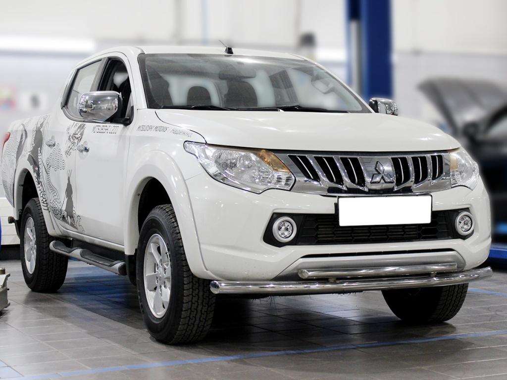 Дуга передняя по низу бампера d-60+43 радиусная двойная, арт. MPL15_1.3 для автомобиля Mitsubishi L-200 2015-2018г.в. - представляет собой элемент тюнинга и защиты автомобиля и производится специально для данной модели компанией Технотек. Данное изделие изготавливается из высококачественной нержавеющей стали AISI 304 с полировкой, что обеспечивает сохранение отличного внешнего вида в течение длительного времени в наших непростых климатических условиях. Срок поставки составляет 1-5 дней. Установить деталь Дуга передняя по низу бампера d-60+43 радиусная двойная для автомобиля Mitsubishi L-200 2015-2018г.в. можно на нашем сервисе, предварительно записавшись по телефону.
