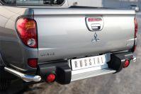 Пороги для Mitsubishi L200 2006 изготовлены из высококачественной нержавеющей стали марки AISI 304, труба имеет диаметр 76 мм. Торцы труб закрыты пластиковыми заглушками.