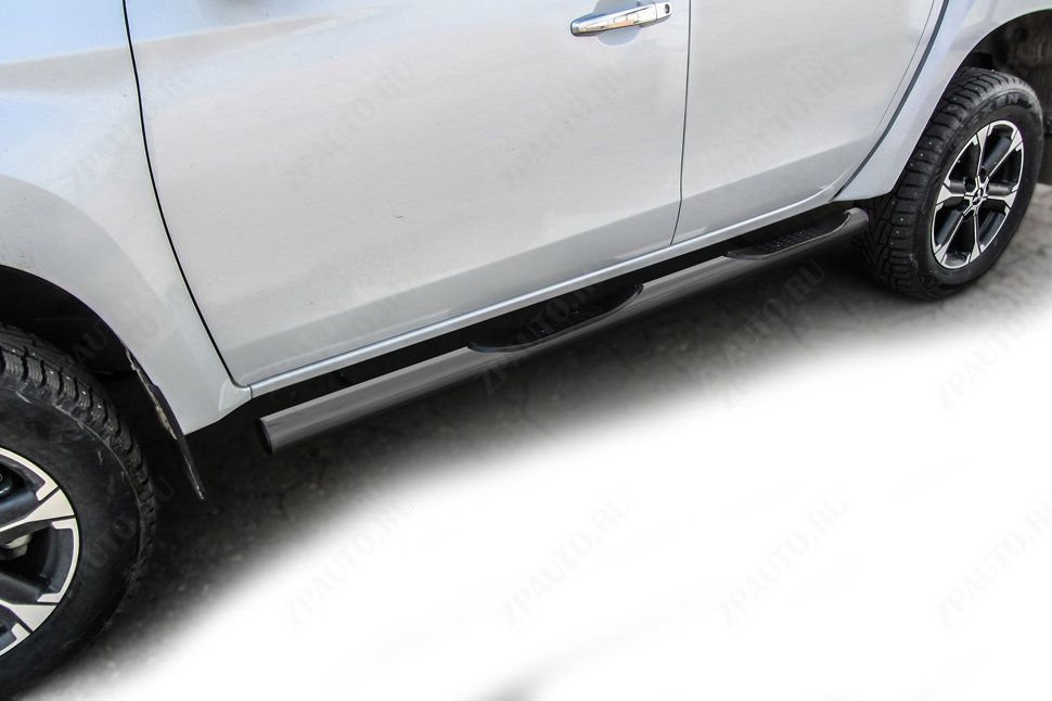Защита порогов d76 с проступями серебристая Mitsubishi L-200 (2018-2022) , Slitkoff, арт. ML18-006S