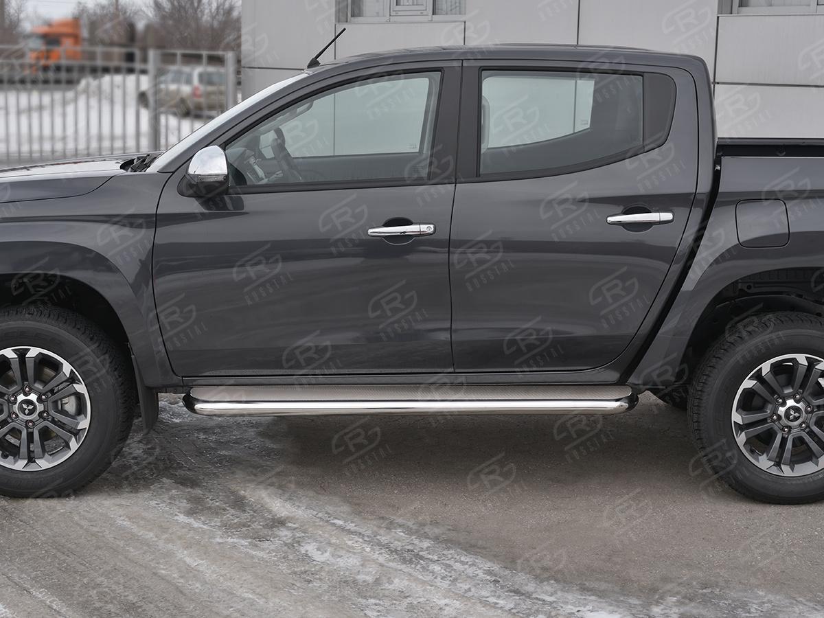 Пороги d 57 арт. ML2L-0032683 для автомобиля Mitsubishi L200 2019 - представляет собой элемент тюнинга и защиты автомобиля и производится специально для данной модели. Данное изделие изготавливается из нержавеющей стали и полируется вручную, что обеспечивает сохранение отличного внешнего вида в течение длительного времени в наших непростых климатических условиях. Срок поставки составляет 1-5 дней. Установить деталь Пороги d57 арт.ML2L-0032683 для автомобиля Mitsubishi L200 2019 можно на нашем сервисе, предварительно записавшись по телефону.