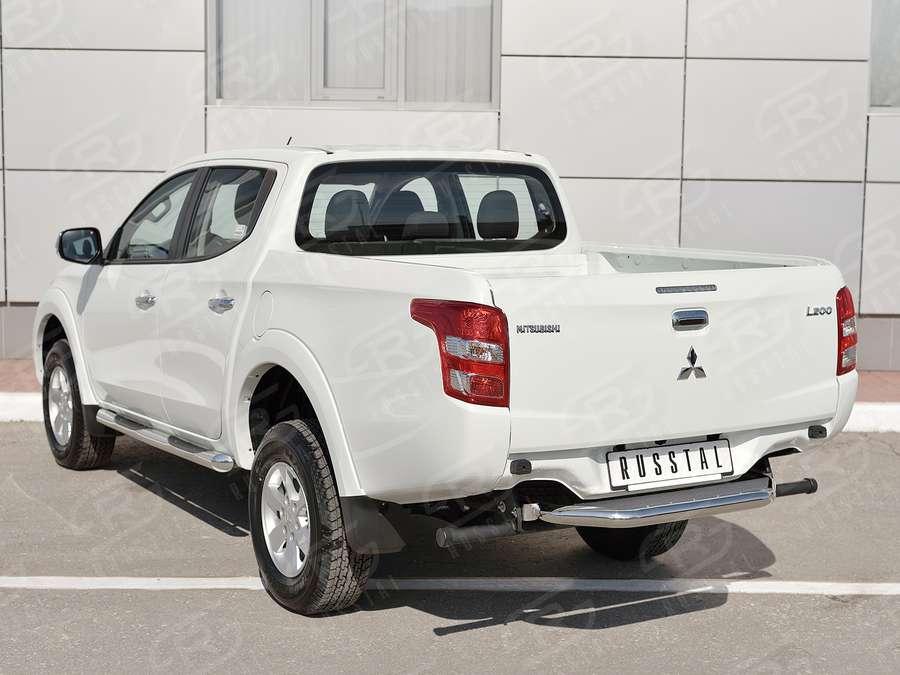 Защита заднего бампера Slitkoff для Mitsubishi L200 2015 (Митсубиши Л200 2015) ML2Z-0022533 изготовлена из высококачественной нержавеющей стали марки AISI 304, труба имеет диаметр 57 мм.