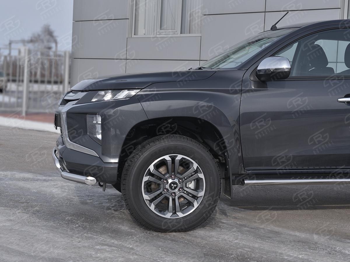 Защита переднего бампера d 57,75x42 арт. ML2Z-003262 для автомобиля Mitsubishi L200 2019 - представляет собой элемент тюнинга и защиты автомобиля и производится специально для данной модели. Данное изделие изготавливается из нержавеющей стали и полируется вручную, что обеспечивает сохранение отличного внешнего вида в течение длительного времени в наших непростых климатических условиях. Срок поставки составляет 1-5 дней. Установить деталь Защита переднего бампера d57,75x42 арт.ML2Z-003262 для автомобиля Mitsubishi L200 2019 можно на нашем сервисе, предварительно записавшись по телефону.