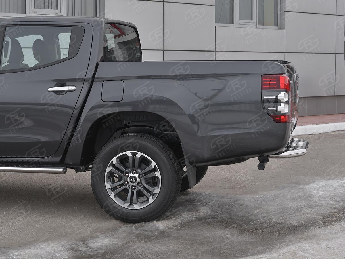 Защита заднего бампера d 57 арт. ML2Z-0032731 для автомобиля Mitsubishi L200 2019 - представляет собой элемент тюнинга и защиты автомобиля и производится специально для данной модели. Данное изделие изготавливается из нержавеющей стали и полируется вручную, что обеспечивает сохранение отличного внешнего вида в течение длительного времени в наших непростых климатических условиях. Срок поставки составляет 1-5 дней. Установить деталь Защита заднего бампера d57 арт.ML2Z-0032731 для автомобиля Mitsubishi L200 2019 можно на нашем сервисе, предварительно записавшись по телефону.