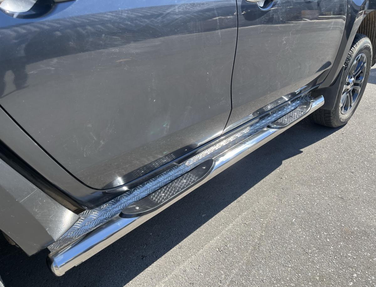 Пороги d 76 арт. MSL200.19.93-1 для автомобиля Mitsubishi L200 2019 - представляет собой элемент тюнинга и защиты автомобиля и производится специально для данной модели. Данное изделие изготавливается из нержавеющей стали и полируется вручную, что обеспечивает сохранение отличного внешнего вида в течение длительного времени в наших непростых климатических условиях. Срок поставки составляет 1-5 дней. Установить деталь Пороги d 76 арт. MSL200.19.93-1 для автомобиля Mitsubishi L200 2019 можно на нашем сервисе, предварительно записавшись по телефону.