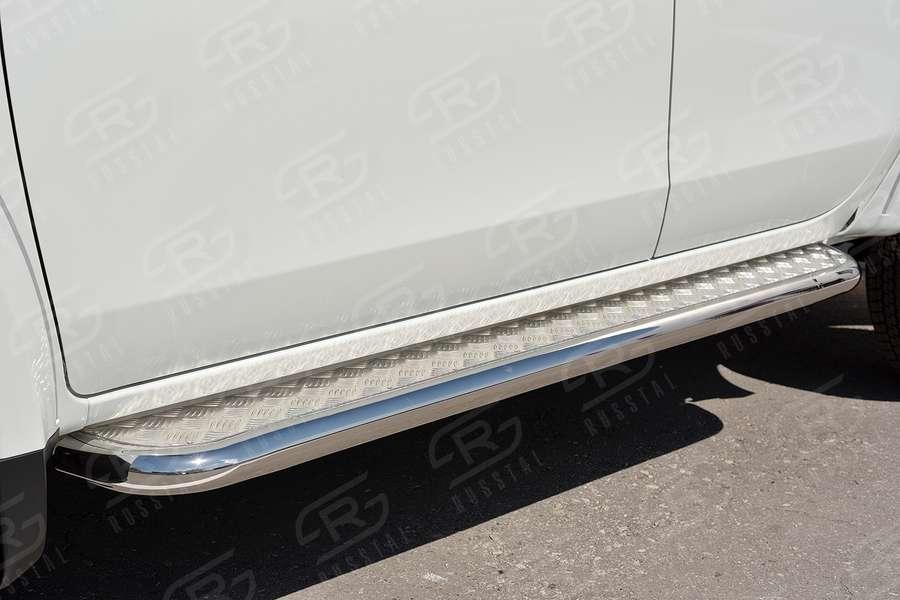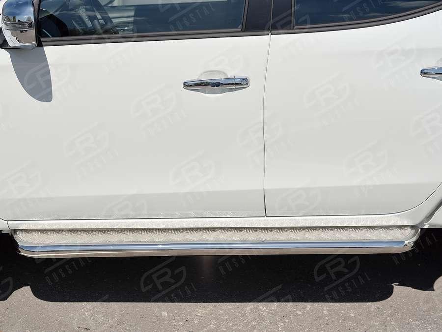 Пороги Slitkoff для Mitsubishi L200 2015 (Митсубиши Л200 2015) ML2L-0022501 изготовлены из высококачественной нержавеющей стали марки AISI 304, труба имеет диаметр 57 мм.