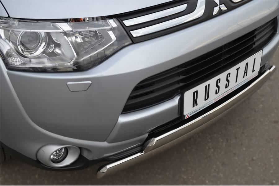 Защита переднего бампера для Mitsubishi Outlander 2012 изготовлена из высококачественной нержавеющей стали марки AISI 304, труба имеет диаметр 75/42 мм.