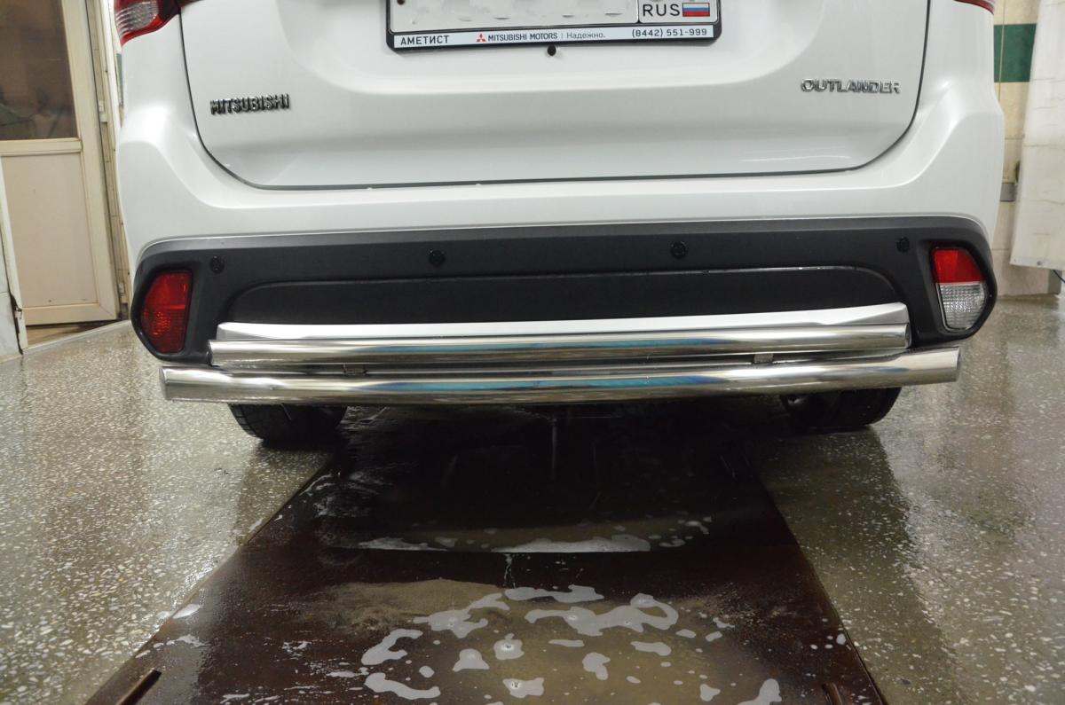 Защита заднего бампера двойная для автомобиля Mitsubishi Outlander 2019 представляет собой элемент тюнинга и защиты автомобиля и производится специально для данной модели. Данное изделие изготавливается из нержавеющей стали и полируется вручную, что обеспечивает сохранение отличного внешнего вида в течение длительного времени в наших непростых климатических условиях. Срок поставки продукции производства компании TCC Тюнинг составляет 1-5 дней. Установить деталь Защита заднего бампера двойная для автомобиля Mitsubishi Outlander 2019 можно на нашем сервисе, предварительно записавшись по телефону.