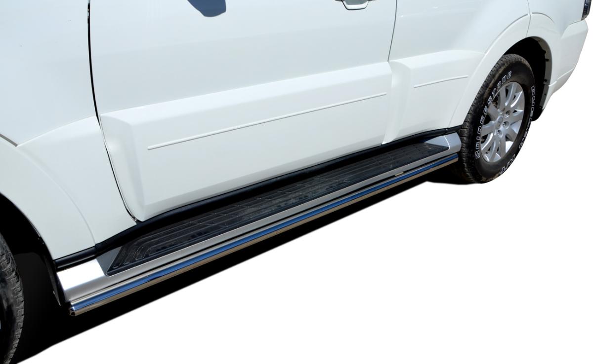 Защита штатного порога труба для автомобиля MITSUBISHI Pajero4 2006-2017. MSP4.06.30 представляет собой элемент тюнинга и защиты автомобиля и производится специально для данной модели. Данное изделие изготавливается из нержавеющей стали и полируется вручную, что обеспечивает сохранение отличного внешнего вида в течение длительного времени в наших непростых климатических условиях. Срок поставки продукции производства компании ЮКК Россия составляет 1-5 дней. Установить деталь Защита штатного порога труба для автомобиля MITSUBISHI Pajero4 2006-2017. MSP4.06.30 можно на нашем сервисе, предварительно записавшись по телефону.