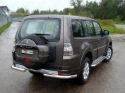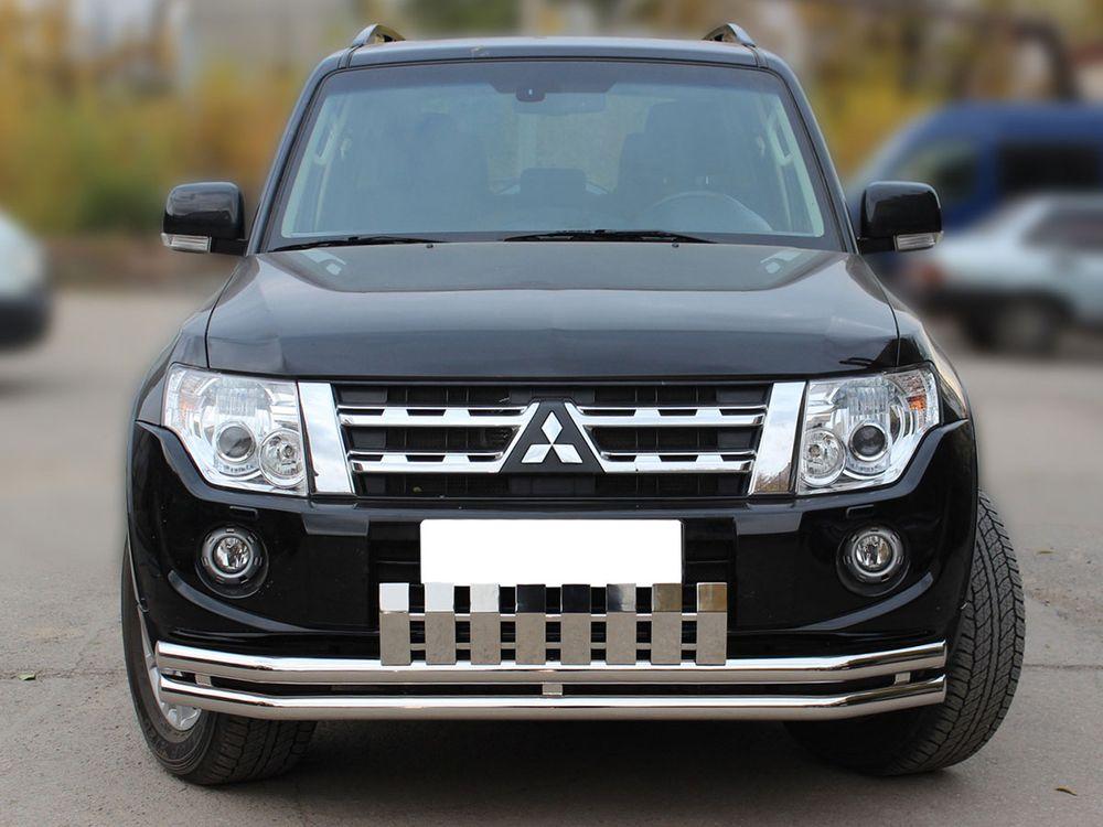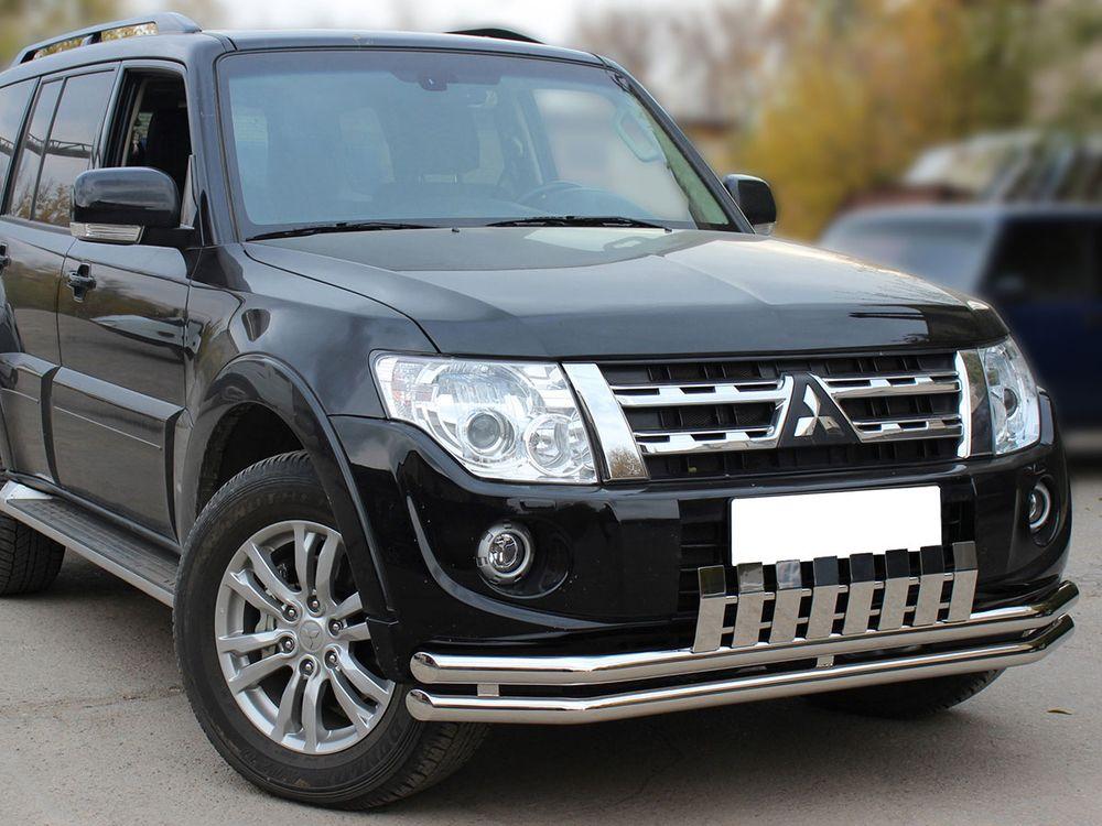 Дуга передняя по низу бампера с загибами d60+60 с верхней накладкой для Mitsubishi Pajero 4 2011, Технотек MP2012_1.1 изготовлена из высококачественной нержавеющей стали, труба имеет диаметр 60/60 мм. В комплекте поставляется набор крепежа и инструкция по установке.