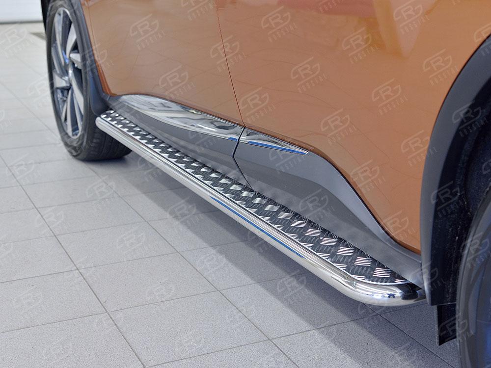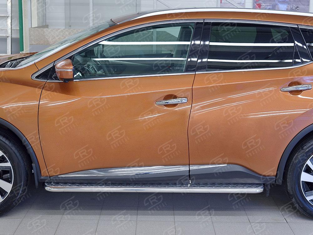 Пороги с листом Slitkoff для Nissan Murano 2016 (Ниссан Мурано 2016) NMUL-0024091 изготовлены из высококачественной нержавеющей стали марки AISI 304, труба имеет диаметр 42 мм.