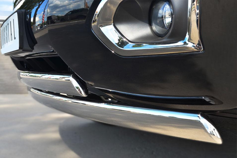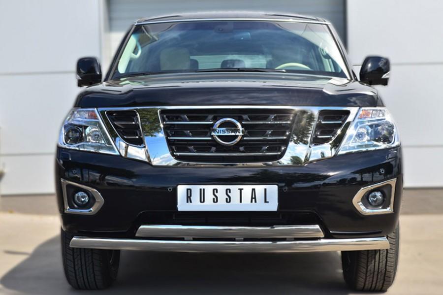 Защита переднего бампера Slitkoff для Nissan Patrol 2014 PATZ-001729 изготовлена из высококачественной нержавеющей стали марки AISI 304, труба имеет диаметр 75x42/75x42 мм.