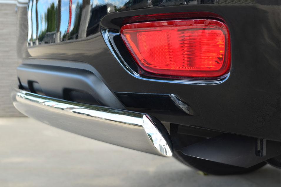 Защита заднего бампера Slitkoff для Nissan Patrol 2014 PATZ-001736 изготовлена из высококачественной нержавеющей стали марки AISI 304, труба имеет диаметр 75x42 мм.