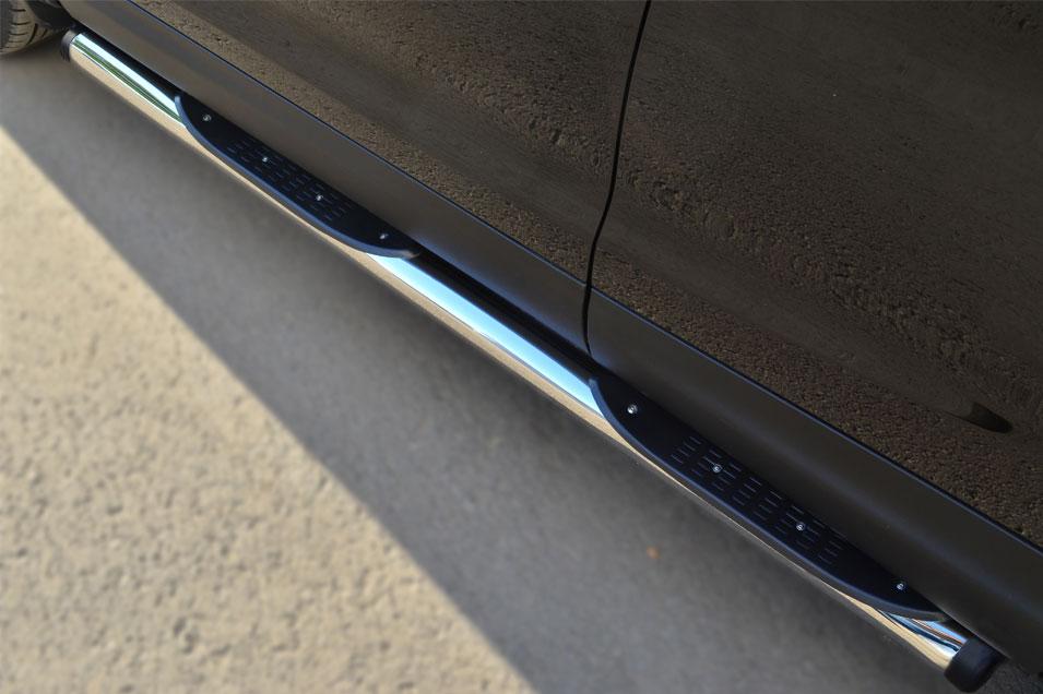 Пороги Slitkoff для Nissan Qashqai 14-/15- SPB (Ниссан Кашкай 2014-/2015-) NQQT-001792 изготовлены из высококачественной нержавеющей стали марки AISI 304, труба имеет диаметр 76 мм. Торцы труб закрыты пластиковыми заглушками.