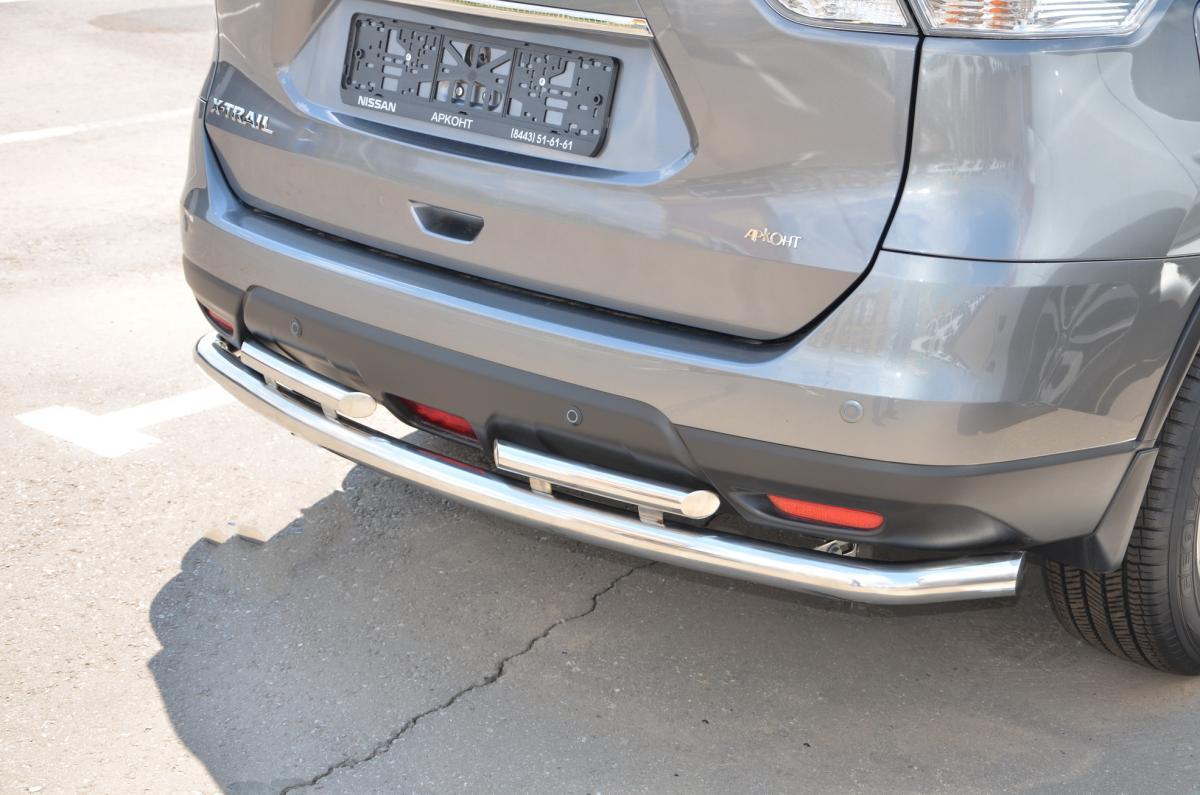 Защита заднего бампера двойная угл.большая для автомобиля NISSAN X-trail 2015 (Т32) Третье поколение (артикул NXT.15.28-1) представляет собой элемент тюнинга и защиты автомобиля и производится специально для данной модели. Данное изделие изготавливается из нержавеющей стали и полируется вручную, что обеспечивает сохранение отличного внешнего вида в течение длительного времени в наших непростых климатических условиях. Срок поставки продукции производства компании ЮКК Россия составляет 1-5 дней. Установить деталь Защита заднего бампера двойная угл.большая для автомобиля NISSAN X-trail 2015 (Т32) Третье поколение с артикулом NXT.15.28-1 можно на нашем сервисе, предварительно записавшись по телефону.