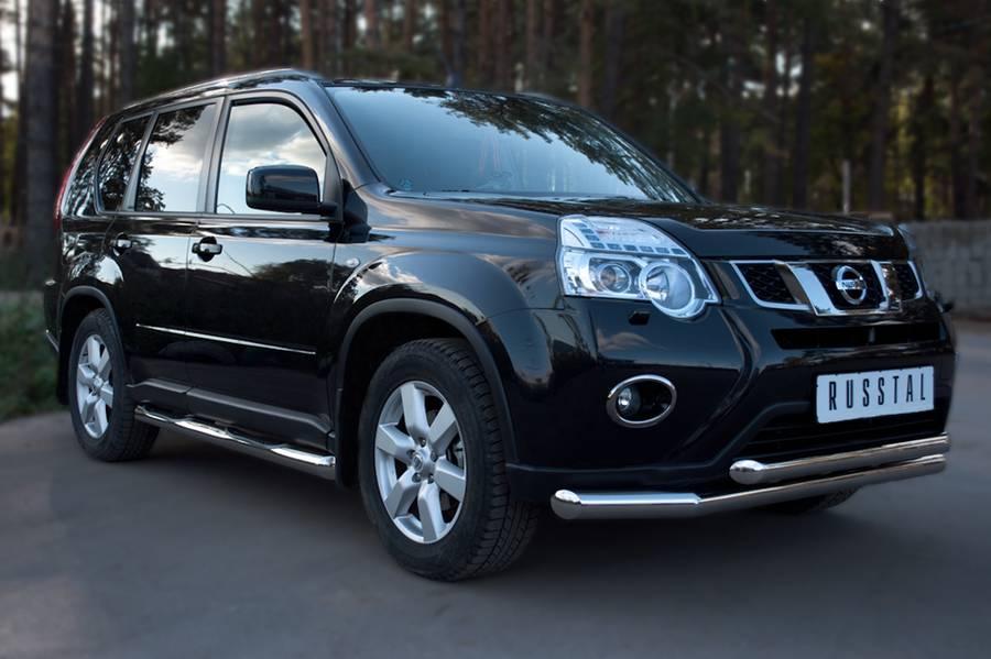 Защита переднего бампера для Nissan X-Trail 2011- изготовлена из высококачественной нержавеющей стали марки AISI 304, труба имеет диаметр 76/57 мм.