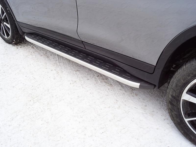 Пороги алюминиевые с пластиковой накладкой 1720 мм для автомобиля Nissan X-Trail (T32) 2018- представляет собой элемент тюнинга и защиты автомобиля и производится специально для данной модели. Данное изделие изготавливается из нержавеющей стали и полируется вручную, что обеспечивает сохранение отличного внешнего вида в течение длительного времени в наших непростых климатических условиях. Срок поставки продукции производства компании TCC Тюнинг составляет 1-5 дней. Установить Пороги алюминиевые с пластиковой накладкой 1720 мм для автомобиля Nissan X-Trail (T32) 2018- можно на нашем сервисе, предварительно записавшись по телефону.