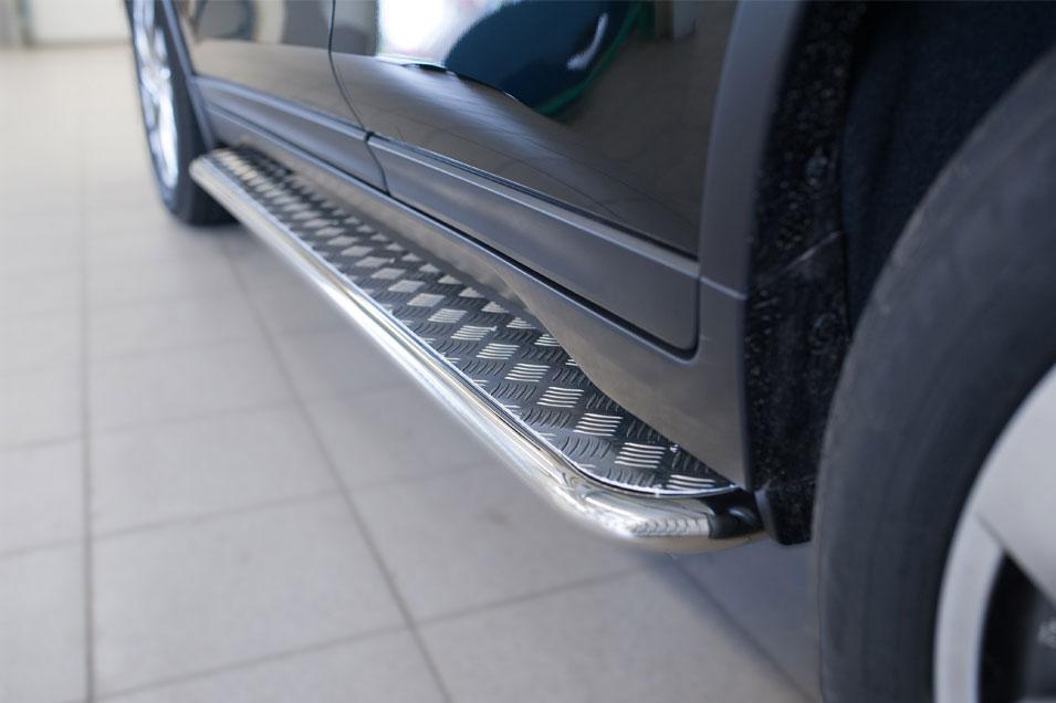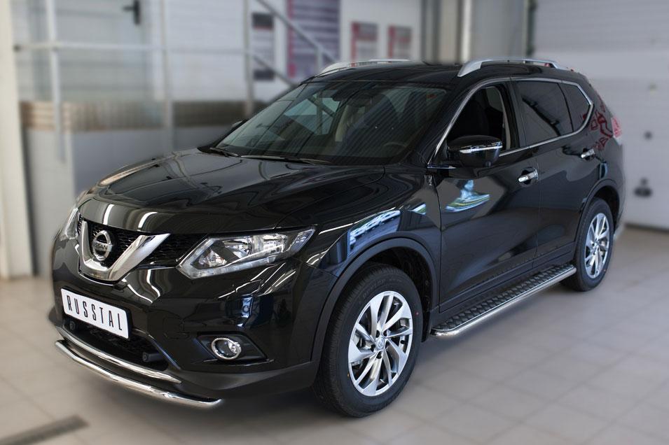 Пороги Slitkoff для X-Trail T32 2014 (Ниссан ИксТрейл 2014) NXL-002090 изготовлены из высококачественной нержавеющей стали марки AISI 304, труба имеет диаметр 42 мм.