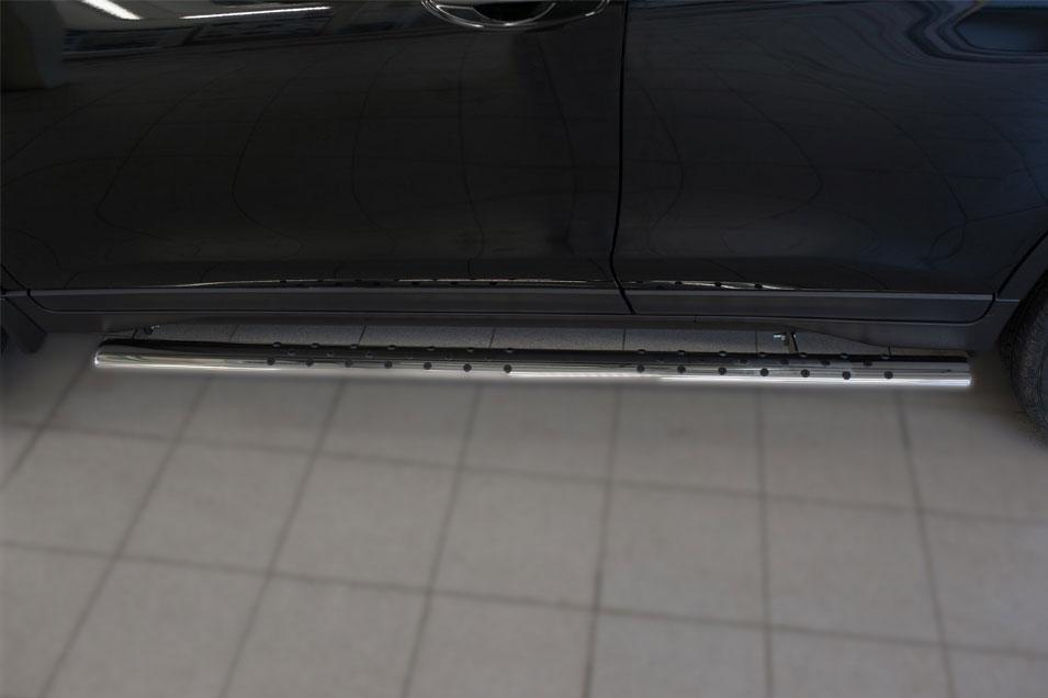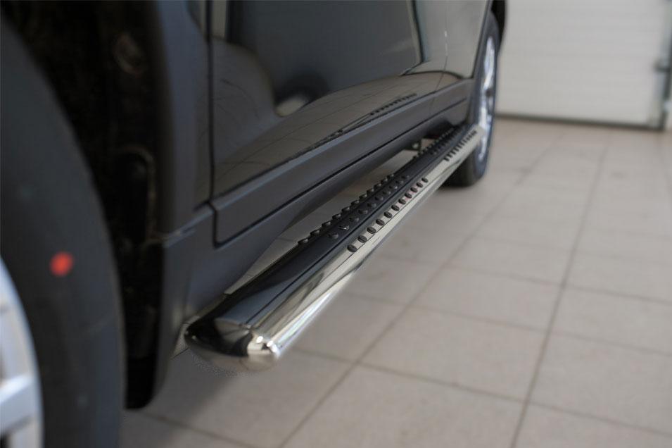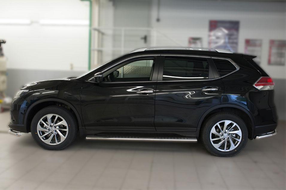 Пороги Slitkoff для X-Trail T32 2014 (Ниссан ИксТрейл 2014) NXO-002088 изготовлены из высококачественной нержавеющей стали марки AISI 304, труба имеет диаметр 75x42 мм.