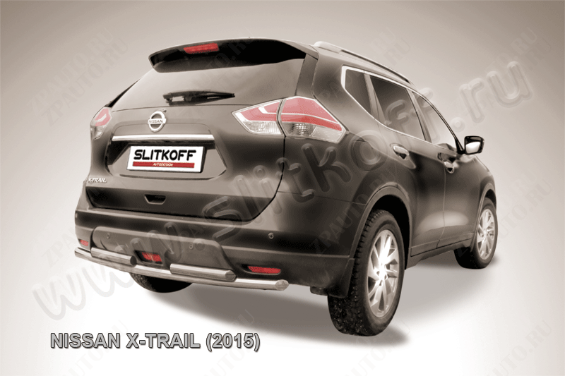 Защита заднего бампера d57+d57 двойная Nissan X-Trail (2013-2023) Black Edition, Slitkoff, арт. NXT15-008BE