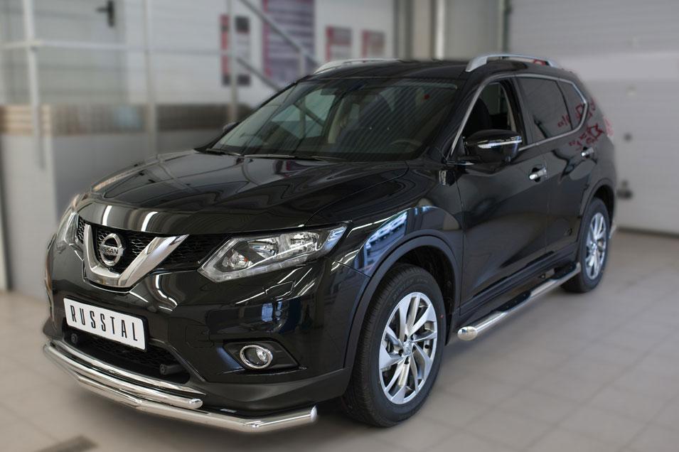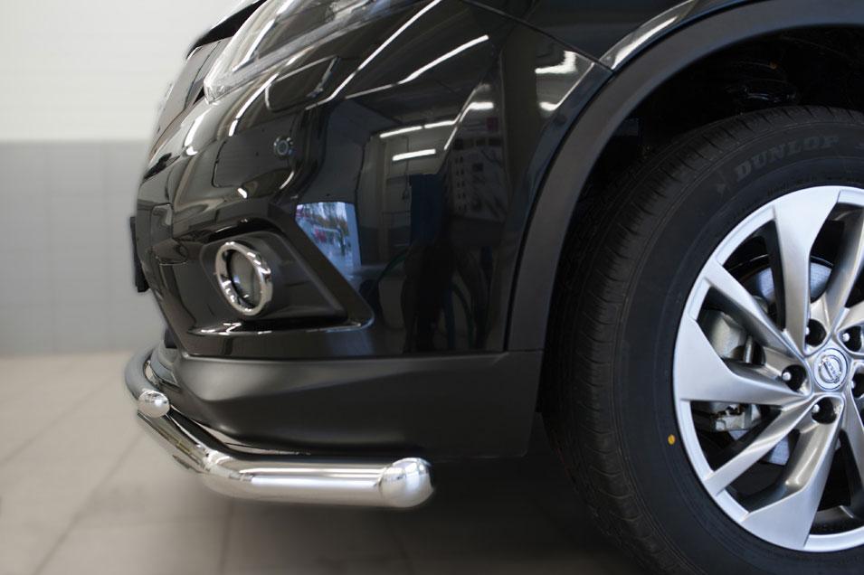 Защита переднего бампера Slitkoff для X-Trail T32 2014 (Ниссан ИксТрейл 2014) NXZ-002081 изготовлена из высококачественной нержавеющей стали марки AISI 304, труба имеет диаметр 57/42 мм.