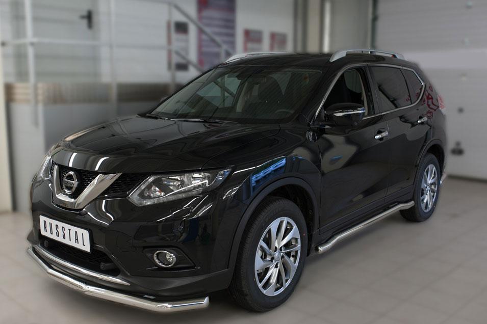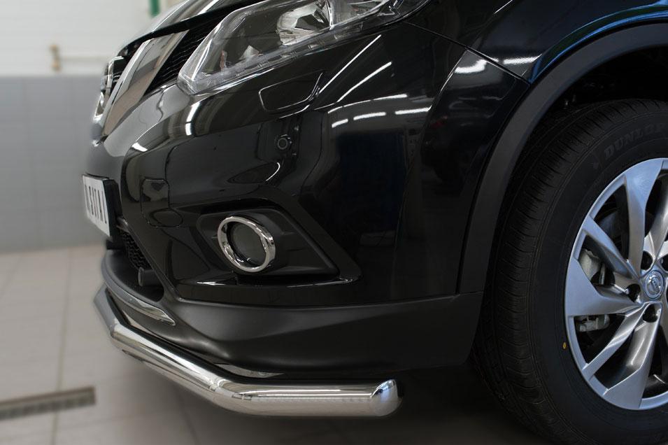 Защита переднего бампера Slitkoff для X-Trail T32 2014 (Ниссан ИксТрейл 2014) NXZ-002083 изготовлена из высококачественной нержавеющей стали марки AISI 304, труба имеет диаметр 57 мм.
