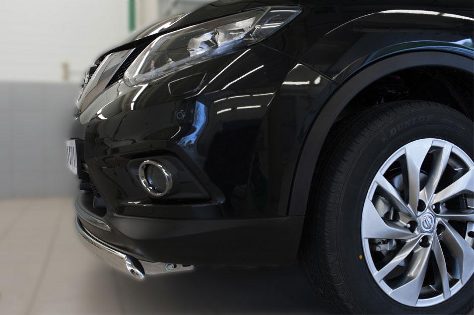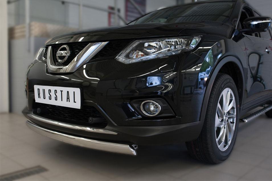Защита переднего бампера Slitkoff для X-Trail T32 2014 (Ниссан ИксТрейл 2014) NXZ-002085 изготовлена из высококачественной нержавеющей стали марки AISI 304, труба имеет диаметр 75x42 мм.