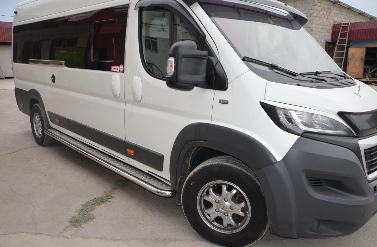 Пороги с накладным листом для автомобиля PEUGEOT Boxer c 2014 (артикул PB.14.41) представляет собой элемент тюнинга и защиты автомобиля и производится специально для данной модели. Данное изделие изготавливается из нержавеющей стали и полируется вручную, что обеспечивает сохранение отличного внешнего вида в течение длительного времени в наших непростых климатических условиях. Срок поставки продукции производства компании ЮКК Россия составляет 1-5 дней. Установить деталь Пороги с накладным листом для автомобиля PEUGEOT Boxer c 2014 с артикулом PB.14.41 можно на нашем сервисе, предварительно записавшись по телефону.