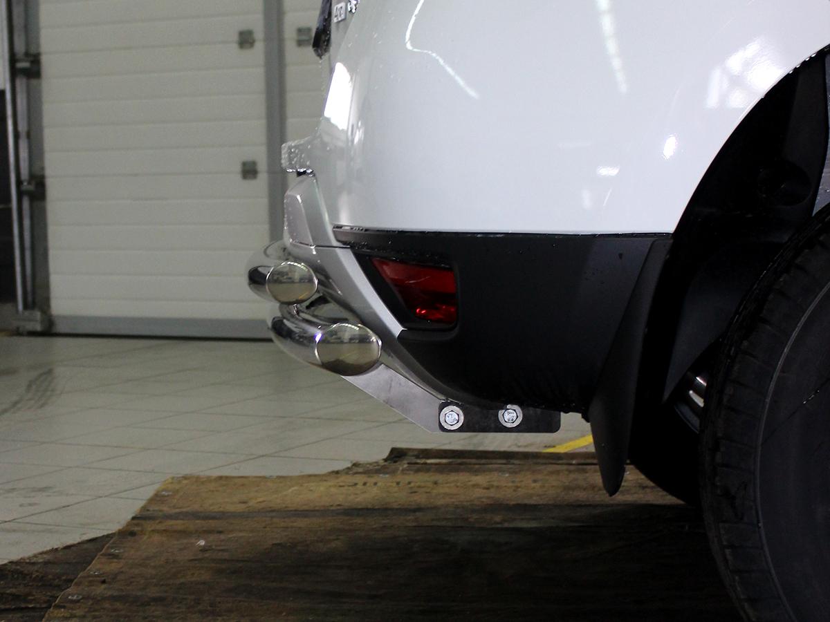 Защита заднего бампера радиусная двойная d-60+53 (без фаркопа), арт. RD_3.2 для автомобиля Renault Duster 2011-2014 - представляет собой элемент тюнинга и защиты автомобиля и производится специально для данной модели компанией Технотек. Данное изделие изготавливается из высококачественной нержавеющей стали AISI 304 с полировкой, что обеспечивает сохранение отличного внешнего вида в течение длительного времени в наших непростых климатических условиях. Срок поставки составляет 1-5 дней. Установить деталь Защита заднего бампера радиусная двойная d-60+53 (без фаркопа) для автомобиля Renault Duster 2011-2014 можно на нашем сервисе, предварительно записавшись по телефону.