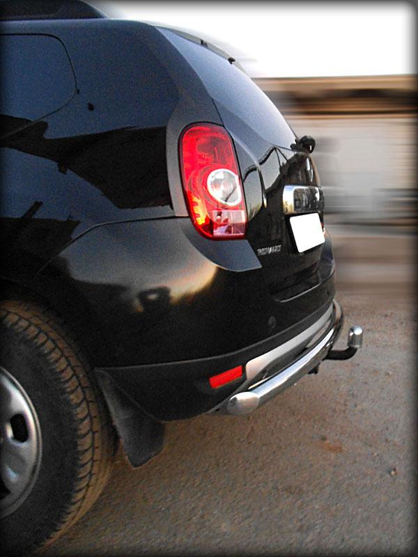 Защита заднего бампера радиусная одинарная d60 (под фаркоп Baltex) для Renault Duster 4x4, Технотек RD_3 изготовлена из высококачественной нержавеющей стали, труба имеет диаметр 60 мм. В комплекте поставляется набор крепежа и инструкция по установке.