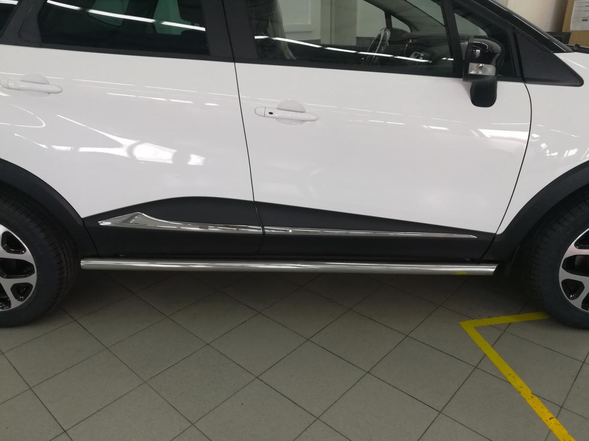 Защита штатного порога для автомобиля RENAULT Kaptur 2017 (артикул RK.17.32) представляет собой элемент тюнинга и защиты автомобиля и производится специально для данной модели. Данное изделие изготавливается из нержавеющей стали и полируется вручную, что обеспечивает сохранение отличного внешнего вида в течение длительного времени в наших непростых климатических условиях. Срок поставки продукции производства компании ЮКК Россия составляет 1-5 дней. Установить деталь Защита штатного порога для автомобиля RENAULT Kaptur 2017 с артикулом RK.17.32 можно на нашем сервисе, предварительно записавшись по телефону.