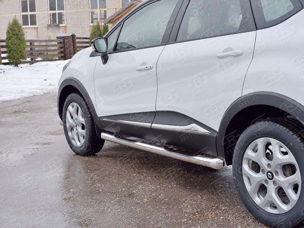 Пороги (вариант 1) Slitkoff для Renault Kaptur 2016 (Рено Каптюр) RKPT-0024651 изготовлены из высококачественной нержавеющей стали марки AISI 304, труба имеет диаметр 76 мм.