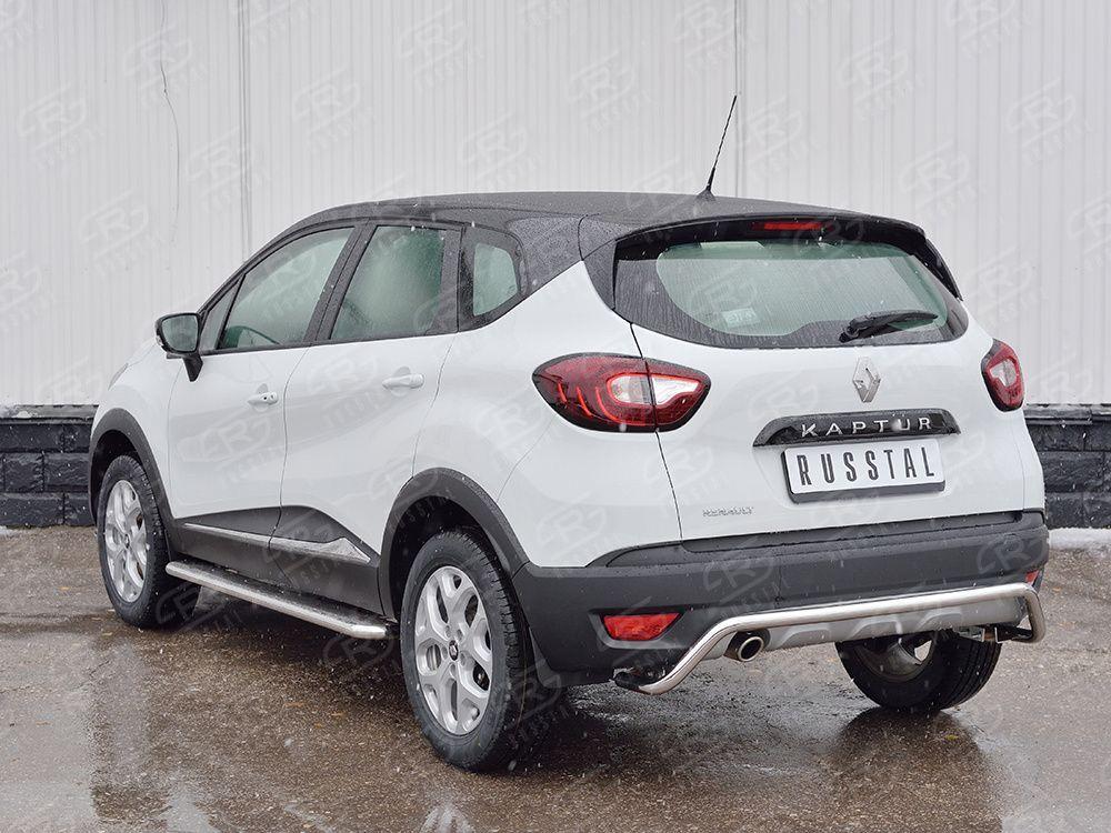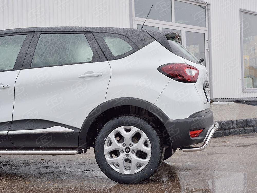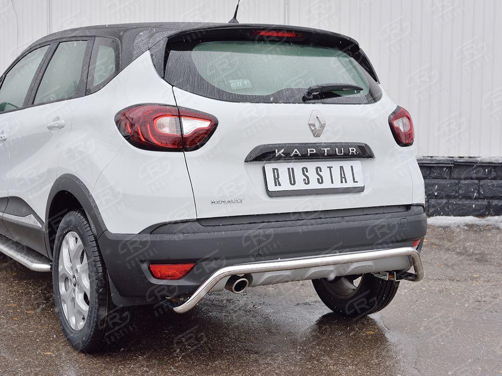Защита заднего бампера Slitkoff для Renault Kaptur 2016 (Рено Каптюр) RKPZ-002470 изготовлена из высококачественной нержавеющей стали марки AISI 304, труба имеет диаметр 42 мм.