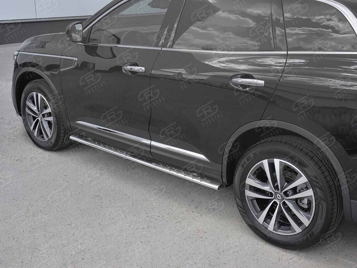 Пороги труба 75х42 овал с проступью RKO-002974 для автомобиля RENAULT KOLEOS 2017- представляет собой элемент тюнинга и защиты автомобиля и производится специально для данной модели. Данное изделие изготавливается из нержавеющей стали и полируется вручную, что обеспечивает сохранение отличного внешнего вида в течение длительного времени в наших непростых климатических условиях. Срок поставки продукции производства компании TCC Тюнинг составляет 1-5 дней. Установить деталь Пороги труба 75х42 овал с проступью RKO-002974 для автомобиля RENAULT KOLEOS 2017- можно на нашем сервисе, предварительно записавшись по телефону.