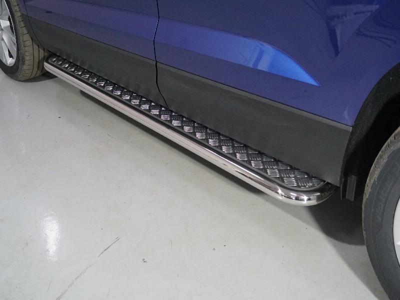 Пороги с площадкой 42,4 мм производства TCC Тюнинг арт. SKOKAR20-23 для автомобиля Skoda Karoq 2020- - представляет собой элемент тюнинга и защиты автомобиля и производится специально для данной модели. Данное изделие изготавливается из нержавеющей стали и полируется вручную, что обеспечивает сохраниение отличного внешнего вида в течение длительного времени в наших непростых климатических условиях. Срок поставки составляет 1-5 дней. Установить деталь Пороги с площадкой 42,4 мм арт.SKOKAR20-23 для автомобиля Skoda Karoq 2020- можно на нашем сервисе, предварительно записавшись по телефону.