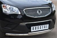 Защита переднего бампера d76+d42 двойная черная SsangYong Actyon (2010-2013) , Slitkoff, арт. SYA001B