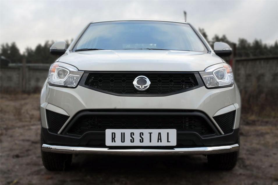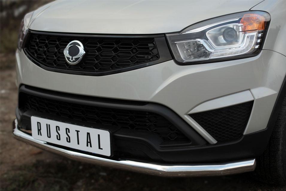 Защита переднего бампера Slitkoff для Ssang Yong Actyon 2014- SYAZ-001972 изготовлена из высококачественной нержавеющей стали марки AISI 304, труба имеет диаметр 57 мм.