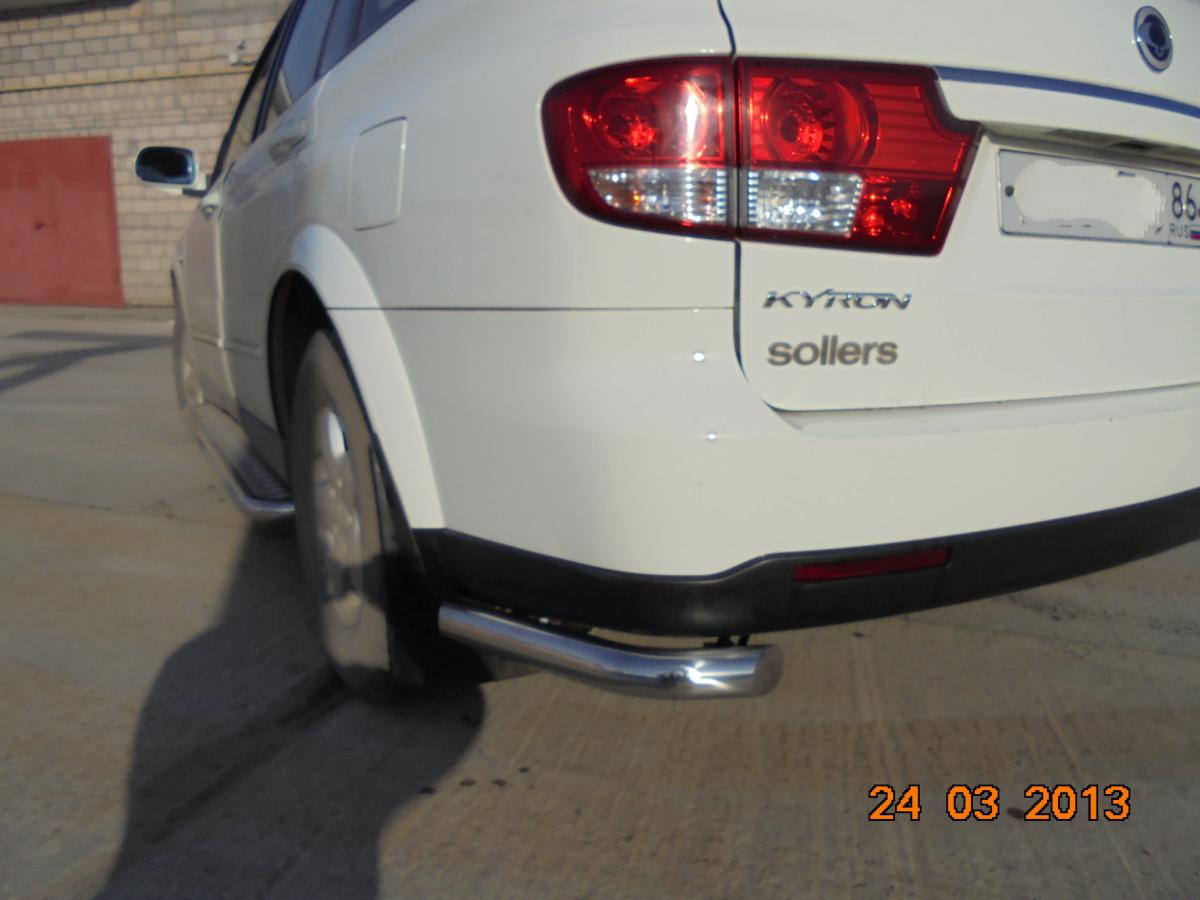 Защита заднего бампера угловая для автомобиля SSANG YONG Kyron 2005. SYKR.05.18 представляет собой элемент тюнинга и защиты автомобиля и производится специально для данной модели. Данное изделие изготавливается из нержавеющей стали и полируется вручную, что обеспечивает сохранение отличного внешнего вида в течение длительного времени в наших непростых климатических условиях. Срок поставки продукции производства компании ЮКК Россия составляет 1-5 дней. Установить деталь Защита заднего бампера угловая для автомобиля SSANG YONG Kyron 2005. SYKR.05.18 можно на нашем сервисе, предварительно записавшись по телефону.