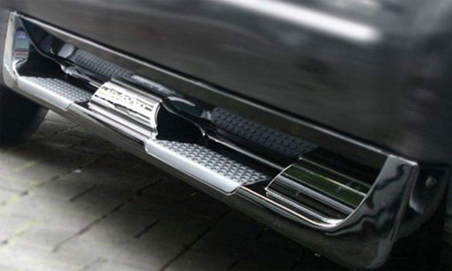 Пороги Side Step OEM на SsangYong Kyron. Пороги рассчитаны на полную нагрузку, на них можно свободно вставать как со стороны водителя, так и со стороны пассажира. Дизайно порогов полностью повторяет оригинальные пороги на SsangYong Kyron.