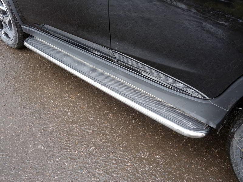 Пороги с площадкой (нерж.лист) 42,4 мм для автомобиля Subaru XV 2017- представляет собой элемент тюнинга и защиты автомобиля и производится специально для данной модели. Данное изделие изготавливается из нержавеющей стали и полируется вручную, что обеспечивает сохранение отличного внешнего вида в течение длительного времени в наших непростых климатических условиях. Срок поставки продукции производства компании TCC Тюнинг составляет 1-5 дней. Установить Пороги с площадкой (нерж.лист) 42,4 мм для автомобиля Subaru XV 2017- можно на нашем сервисе, предварительно записавшись по телефону.
