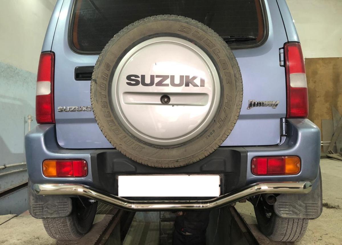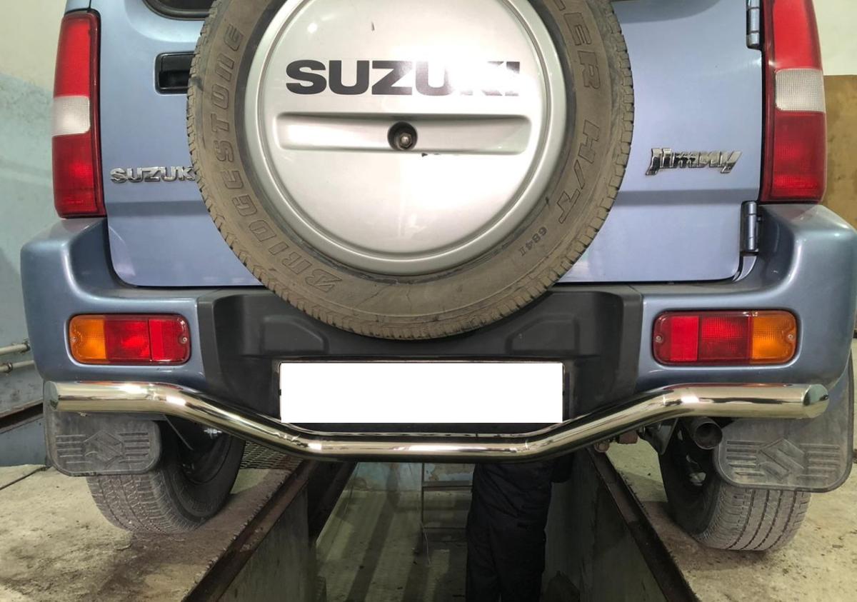 Защита заднего бампера d 53 арт. SJM.12.11 для автомобиля Suzuki Jimny - представляет собой элемент тюнинга и защиты автомобиля и производится специально для данной модели. Данное изделие изготавливается из нержавеющей стали и полируется вручную, что обеспечивает сохранение отличного внешнего вида в течение длительного времени в наших непростых климатических условиях. Срок поставки составляет 1-5 дней. Установить деталь Защита заднего бампера (волна) d53 арт.SJM.12.11 для автомобиля Suzuki Jimny можно на нашем сервисе, предварительно записавшись по телефону.