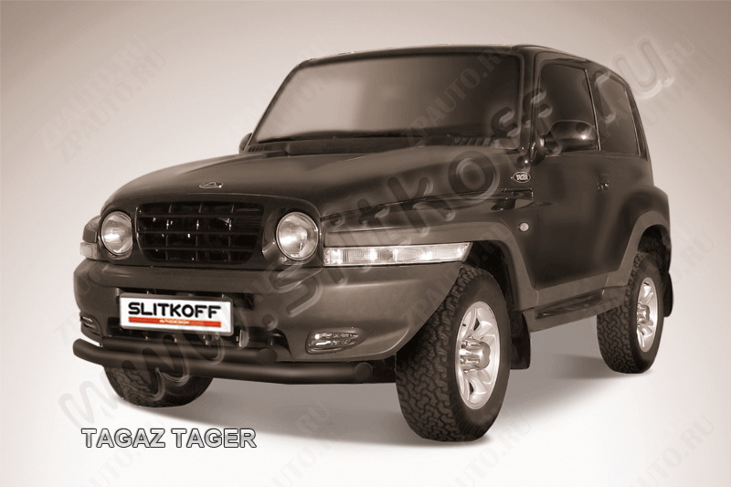 Защита переднего бампера d76+d57 двойная черная Tagaz Tager (2008-2012) , Slitkoff, арт. TAT009B