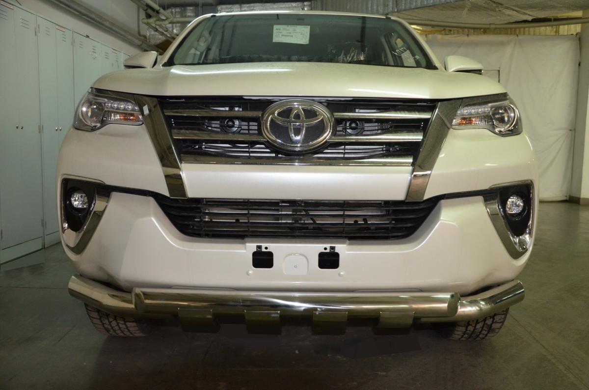 Защита переднего бампера (G) для автомобиля TOYOTA Fortuner 2017. TF.17.05 представляет собой элемент тюнинга и защиты автомобиля и производится специально для данной модели. Данное изделие изготавливается из нержавеющей стали и полируется вручную, что обеспечивает сохранение отличного внешнего вида в течение длительного времени в наших непростых климатических условиях. Срок поставки продукции производства компании ЮКК Россия составляет 1-5 дней. Установить деталь Защита переднего бампера (G) для автомобиля TOYOTA Fortuner 2017. TF.17.05 можно на нашем сервисе, предварительно записавшись по телефону.