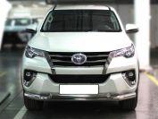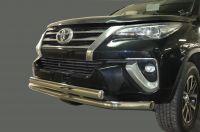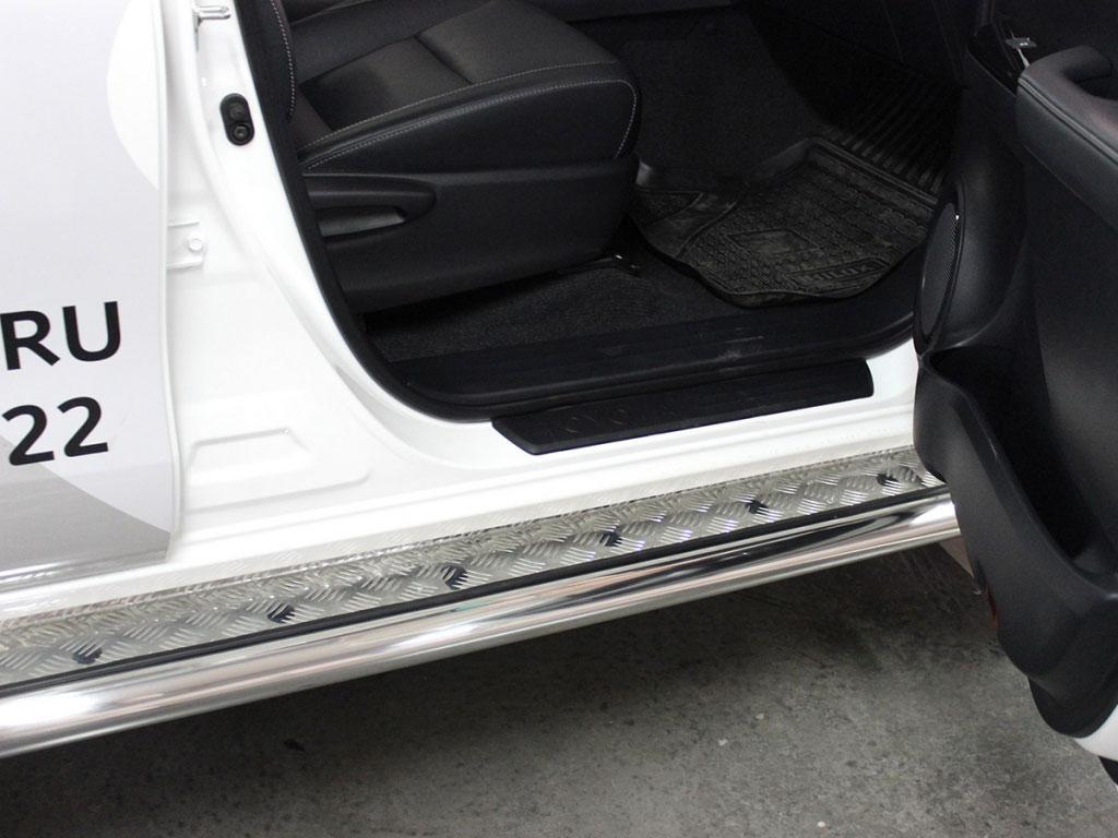 Пороги с листом на Toyota Fortuner 2017 (Тойота Фортунер 2017) изготовлены компанией Технотек из высококачественной нержавеющей стали, труба имеет диаметр 60 мм. В комплекте поставляется набор крепежа и инструкция по установке.